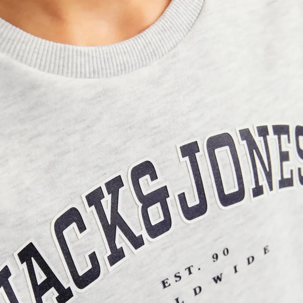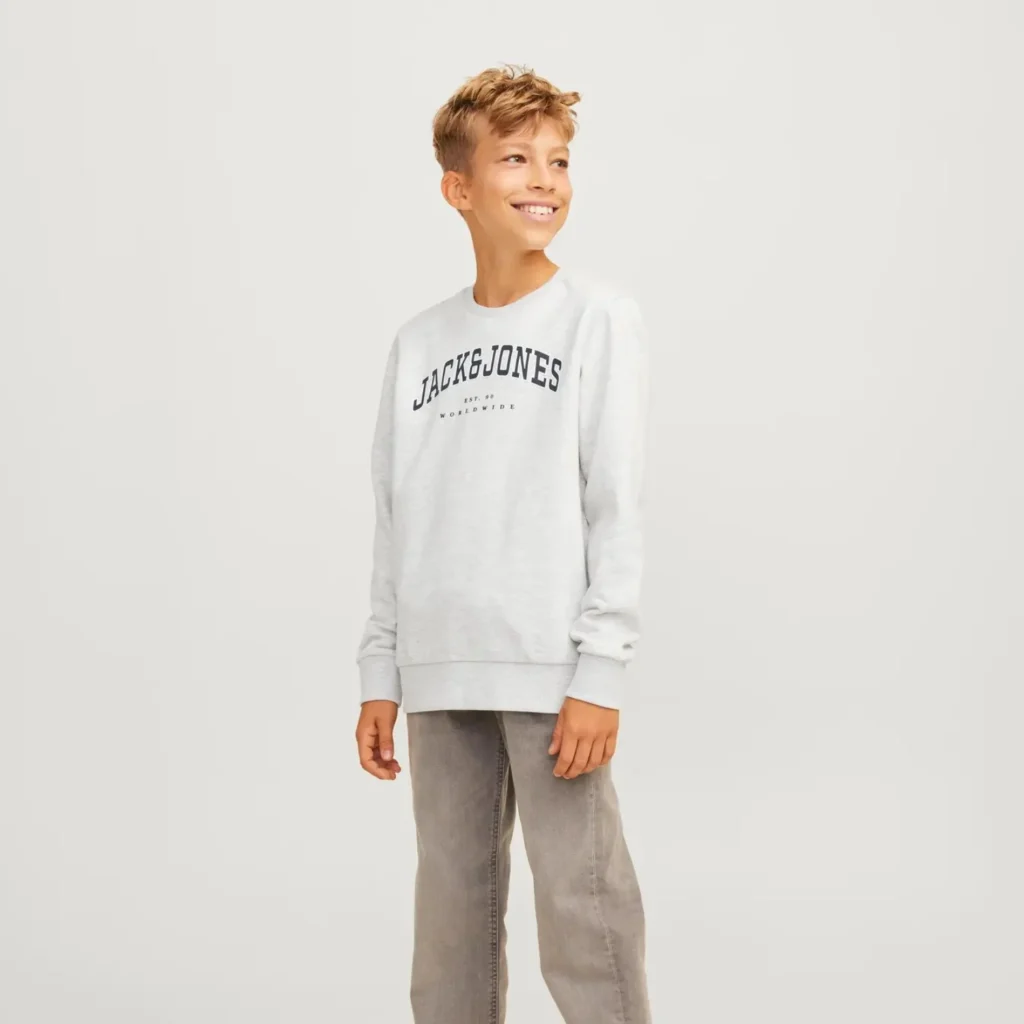 Jack & Jones Junior duks za dečake JJCALEBW predstavlja klasik komad koji svaki ormar mora da ima! Ovaj Jack & Jones pamučni duks za dečake, izrađen je u melirano beloj boji. Savršen izbor za svakodnevno nošenje – bilo da je u pitanju škola, igra napolju ili opuštanje kod kuće. Sa klasičnim okruglim izrezom i regular fit krojem, ovaj duks za dečake, kombinuje udobnost i trendi izgled.