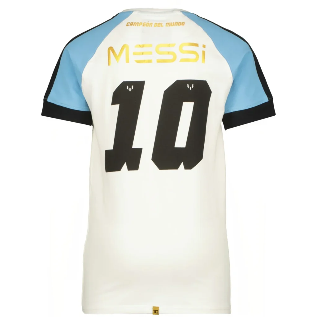 MESSI majica za dečake CHAMPION, za dečake uzrasta od 4 do 16 godina. Ova messi majica je deo ekskluzivne Vingino x MESSI kolekcije i savršen je izbor za dečake koji vole sport. Izrađena od najkvalitetnijeg pamuka u beloj boji sa motivima  dresa argentine. Pruža maksimalan komfor i slobodu pokreta. Lagana, prozračna i prijatna za kožu, idealna je za svakodnevne ili sportske aktivnosti. Bilo da je u pitanju škola, trening, slobodno vreme ili druženje sa prijateljima ova majica je idealan izbor. Prepoznatljiv MESSI logo istaknut je na prednjem delu, dok logotip MESSI i broj 10 na leđima sugeriše na MESSI dres. Dizajn je osmišljen tako da inspiriše mlade sportiste i fanove fudbala, pružajući im osećaj povezanosti sa omiljenim igračem.